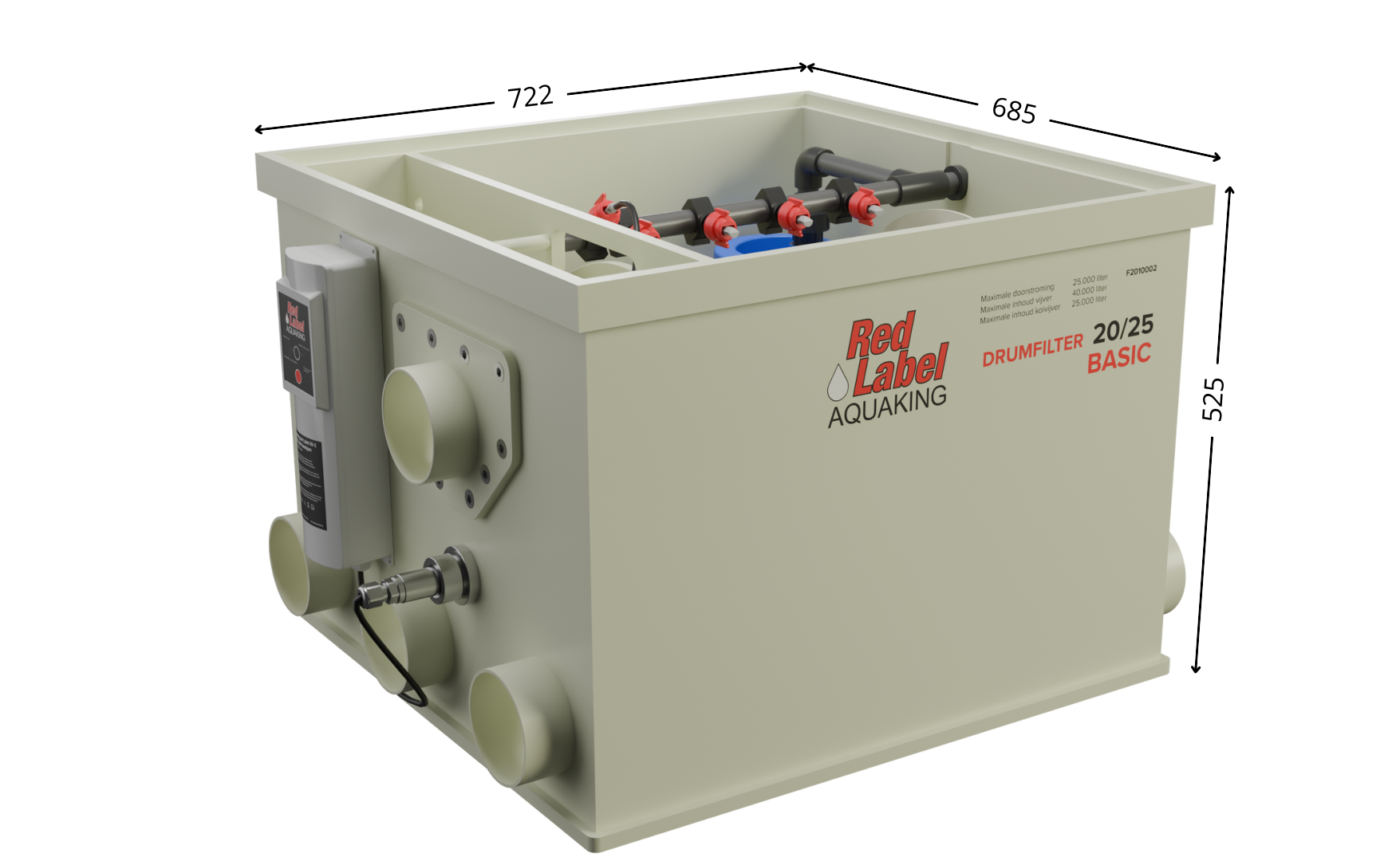 A koi or ornamental pond is a precision-managed aquatic environment where mechanical separation and water clarity directly influence fish health and system reliability. The Red Label BASIC Drum 20/25 is engineered to deliver professional-grade mechanical and ultraviolet filtration in a compact, space-efficient platform suitable for small to medium pond installations.